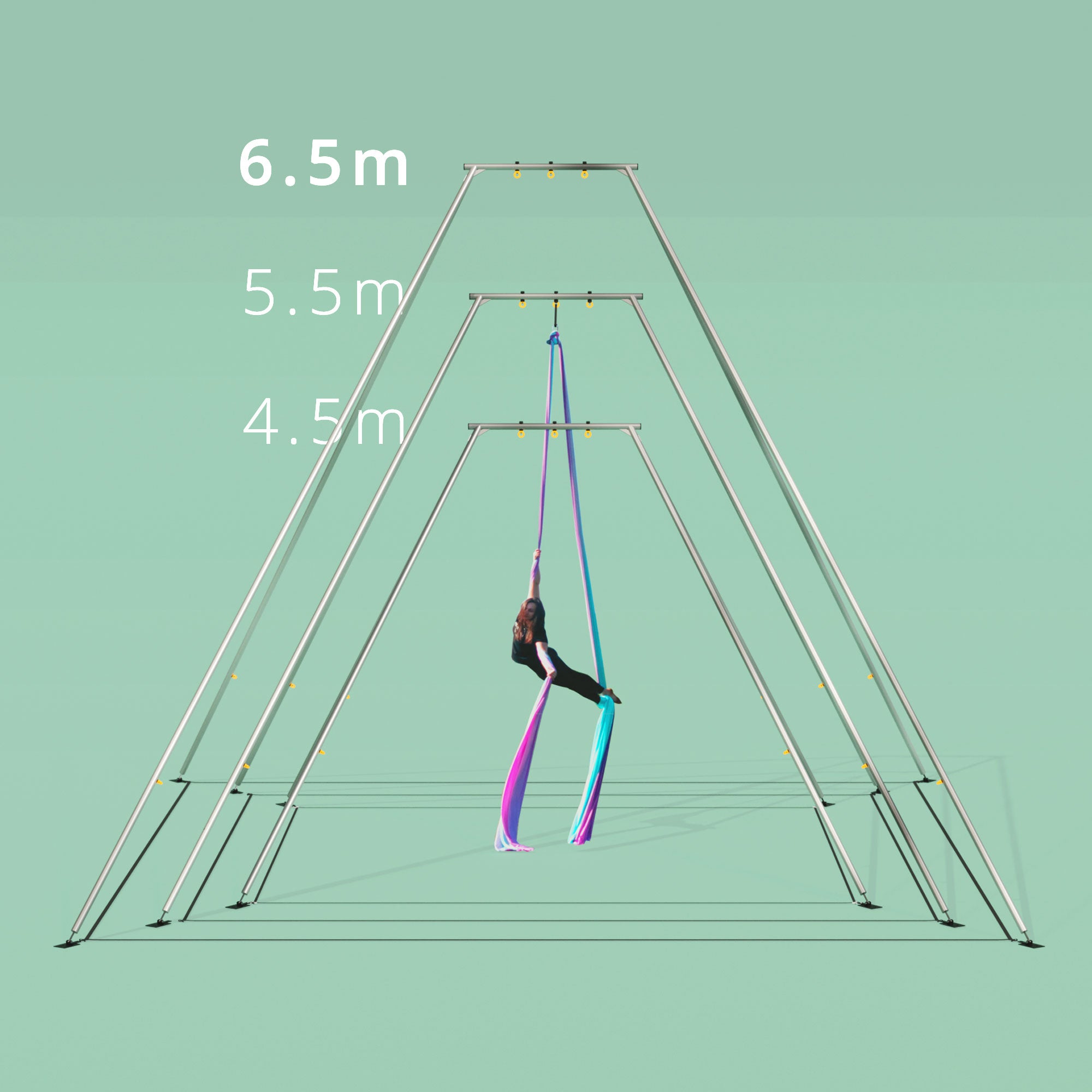 This rig's aluminium is corrosion resistant, making this trapeze rig suitable for permanent outdoor use.